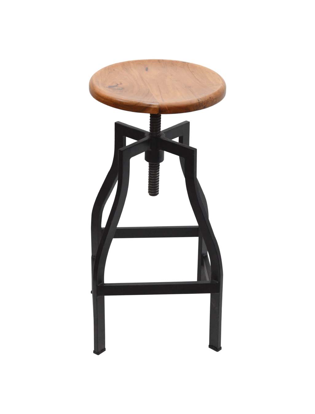 Adjustable Solid Acacia Wood Stool With Metal Pipes | AQ Solid Wood